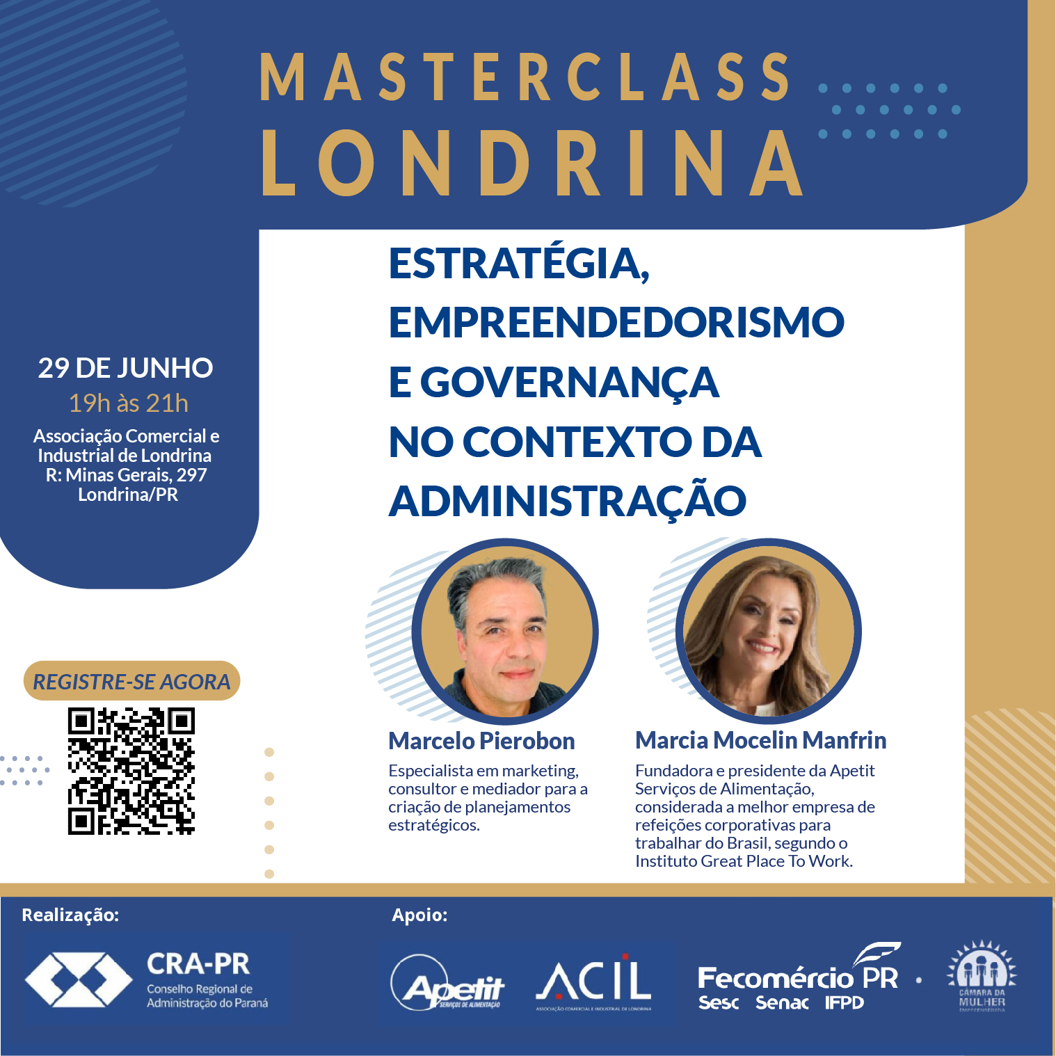 O evento contará com o apoio da Associação Comercial e Industrial de Londrina – ACIL e Apetit Serviços de Alimentação.